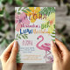 Convite Luau Havaiano Festa de Aniversário Flamingo