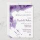 Chá de panela de aquarela lavado moderno / almoço / convite para brunch com manchas e salpicos em tons de ameixa púrpura clara e escura, violeta e índigo. O pequeno símbolo decorativo que representa duas folhas estilizadas no canto direito inferior pode ser encontrado em toda a suíte de casamento (convite, rsvp, cartões de mesa, salvar a data, cartão de menu).