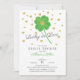 Trevo irlandês moderno e divertido com quatro folhas com Chá de panela de ouro. Belo convite para uma Rua. chá de panela do dia de Patrick, um chá de panela de março ou um chá de casamento do filme "Clover" irlandês. Sacudir a nossa sorte de chá de casamento apaixonado convidando para encontrar um verde coordenador para um toque especial extra.