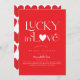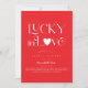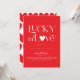 This chic and modern "Lucky in Love" bridal shower invitation features a heart with sophisticated typography. The reverse side features a white background with a red heart pattern. Perfect for St. Valentine's Day or Las Vegas theme bridal shower! Personalize it for your needs. You can find matching products at my store.