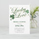 Esta design apresenta a Rua. O tema do chá de panela do Dia de Patrick "Lucky in Love" com ilustração de folha de trevo e caligrafia branca em cor verde-escura com sotaques de ouro. Perfeito um amante moderno e minimalista. Este produto pode ser facilmente personalizado. Se precisar de ajuda para a personalização do produto ou se precisar de produtos correspondentes, por favor contacte-me através do Zazzle.
