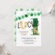Sortudo Primeiro convite de aniversário. Esse doce design apresenta Lucky 1, embelezado com ilustrações aquarelas de caserna de shamrock, ferradura, coelho da floresta e trevo de quatro folhas. A parte de trás do convite tem um padrão de shamrocks verdes e corações de amor. O modelo está pronto para você personalizar o convite com seus próprios detalhes. Por favor, procure na nossa loja banners de coordenação de partidos, etiquetas de favorecimento, etc.