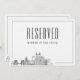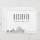 Não tão rápido... Certifique-se de que o lugar não é ocupado por ninguém, mas sim por aquela pessoa especial na sua família ou festa de casamento. Esta única placa reservada para casamento é para um casamento que acontece na bela cidade de Pittsburgh e apresenta um contorno deco do horizonte da cidade junto com um ponto para o nome do ocupante.