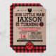 Convite Lumberjack aniversário de criança, xadrez rústico