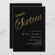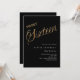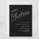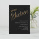 Um 16 convite moderno. O fundo preto clássico e a palavra dezesseis escrita com letras grandes em ouro falso. Personalize e adicione um nome e detalhes da parte. Texto branco.