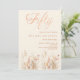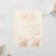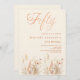 Um convite de 50 anos elegante. Um fundo creme, cor bege, decorado com flores silvestres de cor aquosa em verde bege, rosa, poeirento. Cinquenta é escrita com um grande estilo escrito à mão.