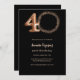 Convite luxo aniversário de 40 anos negro rosa dourado