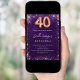 Convite luxo aniversário de 40 anos púrpura de rosa de our