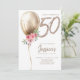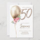 Convite Luxo Balão Beige Glitter 50º Aniversário