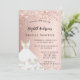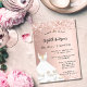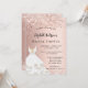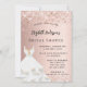 Um convite moderno, na moda e glamouroso para um Chá de panela. Um fundo rosa dourado, gradiente esmagador com confete e um vestido branco. O nome é escrito com um moderno estilo escrito à mão. Personalize e adicione os detalhes da sua festa.