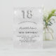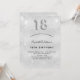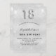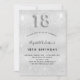 Um convite moderno, na moda e glamouroso para uma 18ª festa de aniversário. Um fundo com aparência de prata falsa, decorado com faíscas de brilho. Personalize e adicione o seu nome e detalhes da festa. O número 18 é escrito com uma fonte de estilo balão, script.