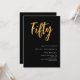 Um convite moderno e na moda para uma 50ª festa de aniversário para ele e para ela. O fundo preto clássico e a palavra Cinquenta escrita com letras douradas falsas grandes. Personalize e adicione um nome e detalhes da parte. Texto branco.