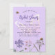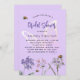 Um fundo violeta. Decorados com abelhas e pintados de flores silvestres em violeta, rosa e uma borboleta grande. Personalize e adicione um nome e detalhes da parte.