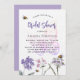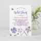 Um fundo branco. Decorados com abelhas e pintados de flores silvestres em violeta, rosa e uma borboleta grande. Personalize e adicione um nome e detalhes da parte.