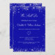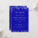 Um convite de casamento para renovação de votos moderno e elegante. Fundo azul real decorado com faíscas cintilantes prateadas falsas. Personalize e adicione seus nomes e detalhes da festa. Letras brancas coloridas.