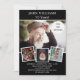 Crie sua própria colagem de fotos exclusiva. Use quatro, quatro das suas fotos favoritas. Personalize e adicione um nome e detalhes da parte. Fundo preto, texto branco.