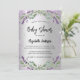 Um convite moderno e na moda. Um fundo de aparência pura prateada com brilho violeta, faíscas, flores de lavanda, flores e verde de eucalipto. Personalize e adicione o nome e os detalhes da festa.