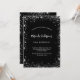 Um fundo na moda preto. Decorado com falso brilho prateado, faíscas. Personalize e adicione um nome, idade e detalhes da festa. O nome é escrito com um script de estilo manuscrito