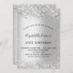 Para uma elegante festa de aniversário 21ª (ou qualquer idade). Um fundo metálico falso prateado. Decorado com falso brilho. Personalize e adicione um nome e detalhes da parte. O nome é escrito com um script de estilo manuscrito