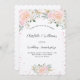 Convite Luxo floral rosa prateado de aniversário de 25 ano