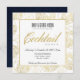 CONVITE LUXO NAVY FALSO OURO ROSA FLORAL COQUETEL FESTA