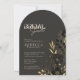 Eleve seus convites de chá de panela com nosso "Convite de Chá de Panela com Arco de Foto Minimalista Floral Dourado Luxuoso 1". Este design elegante em forma de arco apresenta um fundo escuro impressionante adornado com delicados acentos florais dourados. A tipografia ousada e elegante para "Chá de Panela" e os detalhes personalizados para a noiva adicionam um toque de luxo. O verso do convite exibe uma bela foto da noiva. O design minimalista e a paleta de cores ricas criam um visual sofisticado e atemporal, perfeito para qualquer chá de panela.