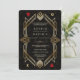 Design de cartão único temático do Casino Royale e do Grande Gatsby. Apresenta estilo art déco vintage, uma moldura texturizada em ouro falso ao estilo de Hollywood dos anos 20, corações vermelhos, Q e K em dois cantos (simulando cartas de baralho), sobre um fundo dourado com padrão Art Déco preto. São usadas palavras especiais como num jogo de pôquer. No verso, padrão Art Déco em ouro falso e iniciais entre os naipes das cartas de baralho. Use a ferramenta Personalizar para adicionar suas informações. Para mais, visite minha Coleção Gatsby Casino.