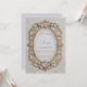 Transporte seus convidados para um mundo de delicada opulência e beleza histórica com este magnífico convite de casamento luxuoso vitoriano. O design centra-se em uma deslumbrante moldura oval dourada antiga dimensional, apresentando intricado trabalho de barraca e filigrana detalhada. Esta moldura é lindamente adornada com aglomerados de pequenas pérolas, contas delicadas e sutil realce de joias nas laterais, dando um ar de design de joias de alta qualidade. A moldura é adornada na parte superior e inferior com rosas cor-de-rosa suave e romântico e ramalhetes florais brancos/azuis, que suavizam as arestas metálicas. O fundo é um creme texturizado rico ou marfim com um padrão de damasco ou renda repetido, completando a estética grandiosa e histórica. O tema geral é um de romance formal e luxo antigo, perfeito para casais que planejam um casamento clássico e elegante, um chá de noiva refinado ou um chá de tarde sofisticado. Este design é perfeito para convites de casamento vitorianos, anúncios de aniversário régios, papelaria de chá de noiva sofisticada ou um convite de gala de museu formal. Esta obra de arte delicada e grandiosa também é uma excelente escolha