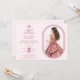 Spanish Luxurious Pink Oval Frame Charming Quinceañera Doll Illustration in Pink Shades Invitation Card.