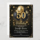 Convite Luxury 50th Birthday Black Gold Balloon Glitter