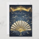 Convide convidados para uma celebração de aniversário exclusiva e elegante com este convite para fãs de ouros de ornamentado. Inspirada pelo glamour vintage, esta design apresenta um filigre delicado, fitas de seda fluentes e sotaques de cor pérola em um fundo de marinho profundo. Perfeito para encontros de escala superior, mascarada e saraus refinados.