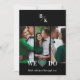 Modern Green Heart Fake Lace White Effect Simple Classic 3 Photos Collage Wedding Invitation with Envelope.
