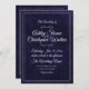 This elegant wedding invitation features a deep navy blue textured background paired with refined white typography for a timeless and sophisticated presentation. The front design showcases the couple’s names in graceful script with classic serif text for the ceremony details, accented by delicate ornamental flourishes and a double-line border. The coordinating back includes a clean monogram layout with a QR code, offering a modern touch while maintaining a formal aesthetic. Perfect for traditional, black-tie, and formal weddings, this invitation blends classic elegance with contemporary convenience and coordinates seamlessly with a complete wedding stationery suite.