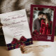 Convite Luxury plaid Burgundy Bow Winter Photo Wedding