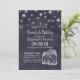 Modelos de Cartão de Convite para Celebração de Casamento/chá de panela - Roteiro Elegante Brunch e Letra Bubble e Luzes de String Jar Vintage Mason no Marinho Blue Floral Linen Background. Um Design perfeito para o seu grande dia. Todo estilo de texto, cores, tamanhos podem ser modificados para ajustado das suas necessidades!