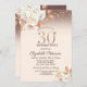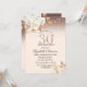 Um convite moderno, chico e glamouroso com um elegante ouro tiara, lanternas de cordas, brilho bokeh ombre e flores.
