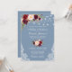 O Cartão de Convite para Casamento Azul Elegante "Burgundy", "String Lights" e "Lace Dusty" inclui rosas de burlagem, rosas cor-de-rosa e verde botânico.