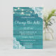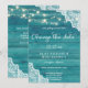 As coisas mudam. Envie aos seus convidados um belo convite de casamento de alteração de data devido a este convite de madeira azul e renda com luzes de corda. Ótimo para casamentos no campo e no quintal.
