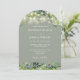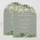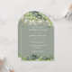 Este convite de casamento elegante com luzes de corda botânicas de eucalipto verde musgo pode ser personalizado com suas informações em tipografia chic com o código QR do site do seu casamento no verso. Projetado por Thisisnotme©