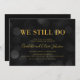 Convite de aniversário de casamento sofisticado com as palavras "We still do" em folha de ouro falso sobre um fundo de padrão de luzes bokeh escuras na parte frontal e um fundo de cor escura na parte traseira. Este convite é perfeito para celebrar um aniversário de casamento de qualquer ano, bastando adicionar o número de anos que está sendo celebrado no texto do espaço reservado.