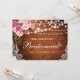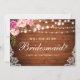 Luzes de corda de casamento rústicas em madeira com renda e floral de água rosa e cartão de convite para ser minha dama de honra