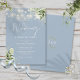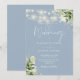 Este convite de casamento azul empoeirado elegante apresenta lindas luzes de corda e folhagens florais e pode ser personalizado com suas informações em tipografia sofisticada com as iniciais do seu monograma no verso. Projetado por Thisisnotme©