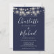 Convite Luzes de Corda Azul Marinho Elegante Aniversário C