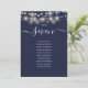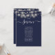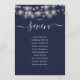 Estes elegantes cartões de gráfico de assentos e número da mesa de dupla face azul marinho com lindas luzes de corda são perfeitos para todas as celebrações. Criado por Thisisnotme©