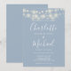 Convite de casamento elegante azul empoeirado com luzes de corda e nomes no estilo assinatura, este convite de casamento elegante pode ser personalizado com suas informações em letras brancas elegantes. Criado por Thisisnotme©