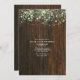 Luzes de corda decoradas com folhagens botânicas penduradas no topo sobre um fundo de madeira rústica escura. Convite de festa para todos os fins, adequado para aniversário, casamento, casa aberta, inauguração, profissional, corporativo, negócios, grande abertura, aniversário, jantar, etc.