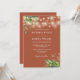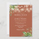 Esta elegante convite de casamento com luzes de corda de eucalipto botânico e terracota pode ser personalizado com suas informações em tipografia elegante com seu monograma no verso. Criado por Thisisnotme©