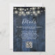 Este convite de casamento com luzes de corda de madeira de celeiro rústico azul pode ser personalizado com suas informações em tipografia moderna e um código QR do site de casamento no verso. Projetado por Thisisnotme©