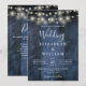 Convite Luzes de Corda de Casamento em Madeira Rústica Azu