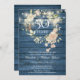Com luzes de corda bonitas e uma delicada grinalda floral de aquarela sobre um fundo de madeira azul rústico, este convite de aniversário de casamento botânico elegante pode ser personalizado com as suas informações especiais de aniversário de casamento. O verso apresenta uma grinalda floral correspondente emoldurando as datas do seu aniversário em tipografia elegante. Concebido por Thisisnotme©